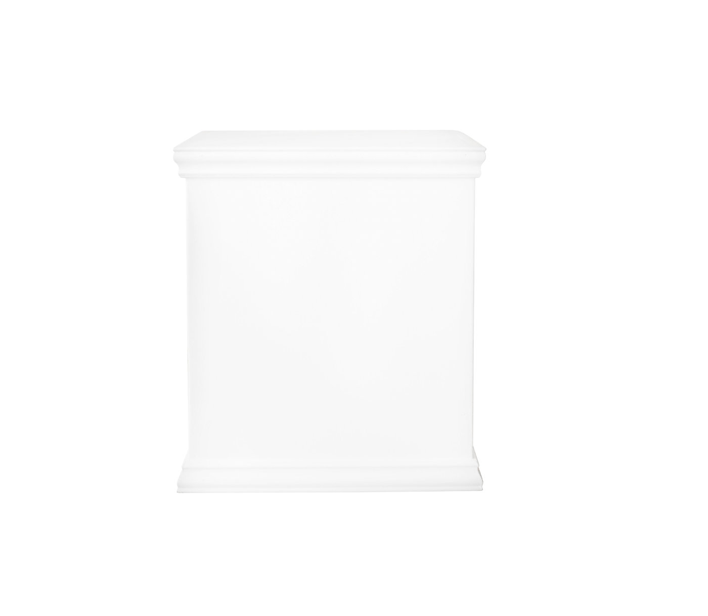 Description: White wood pedestal with trim.