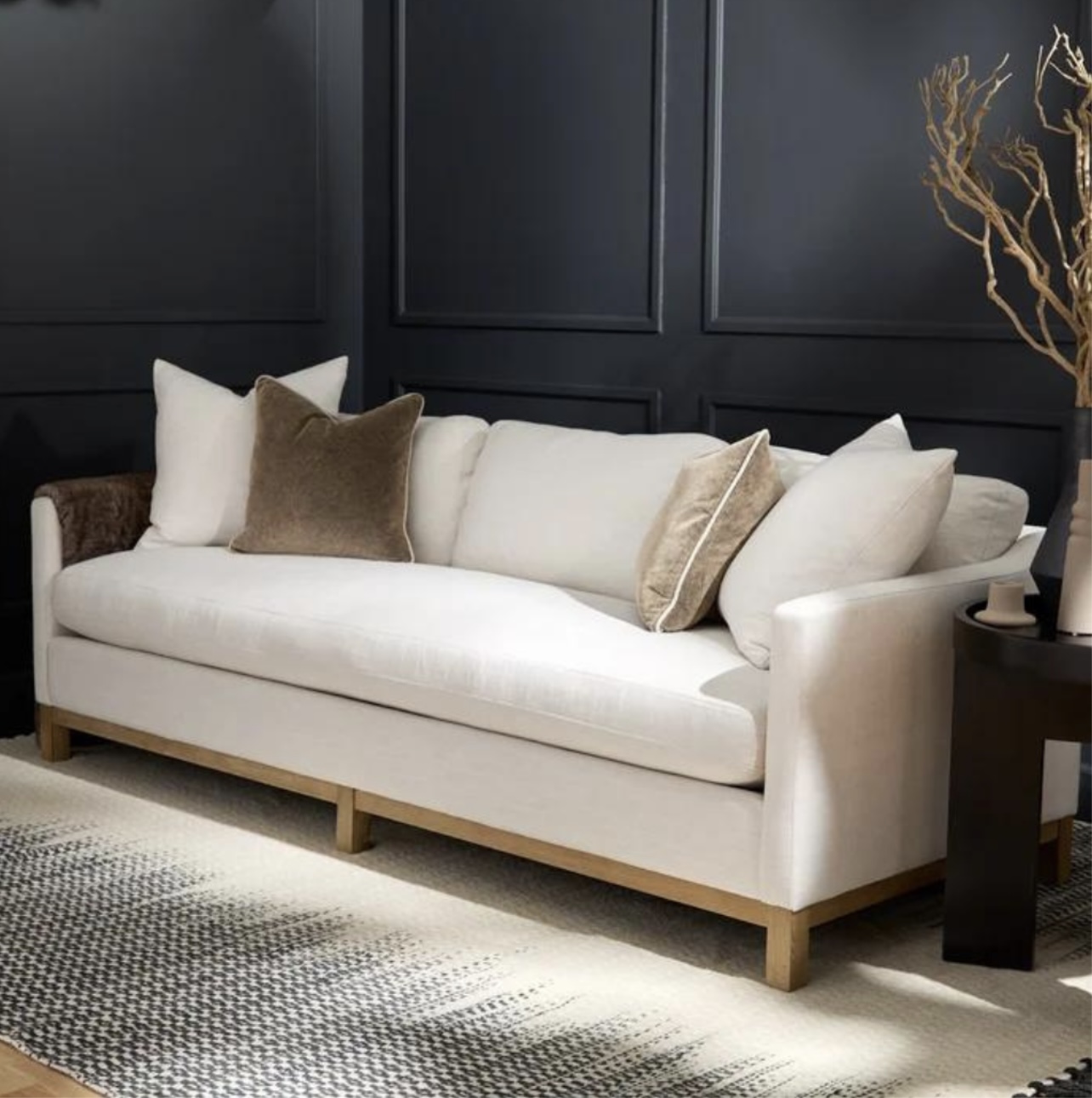 Rentals Upholstered Furniture Capri Sofa Search View Wishlist Capri Sofa Price: $325.00 Description: Ivory linen sofa with a wood frame. Quantity: 2 Dimensions: 91 x 37 x 33 Add to Wishlist