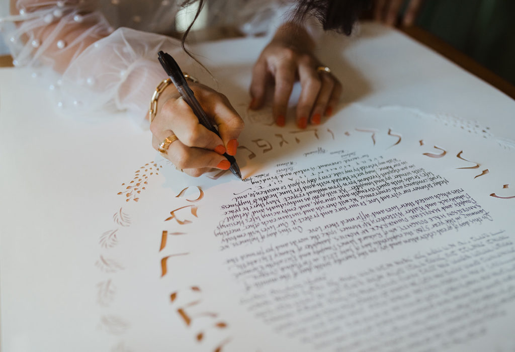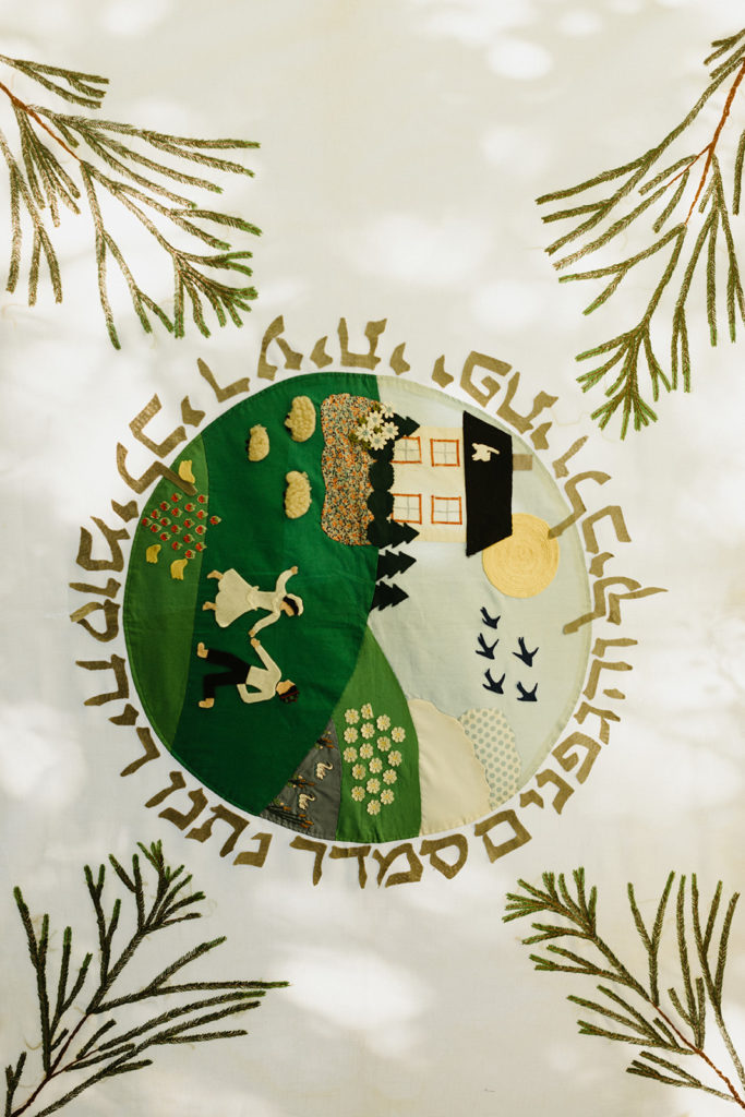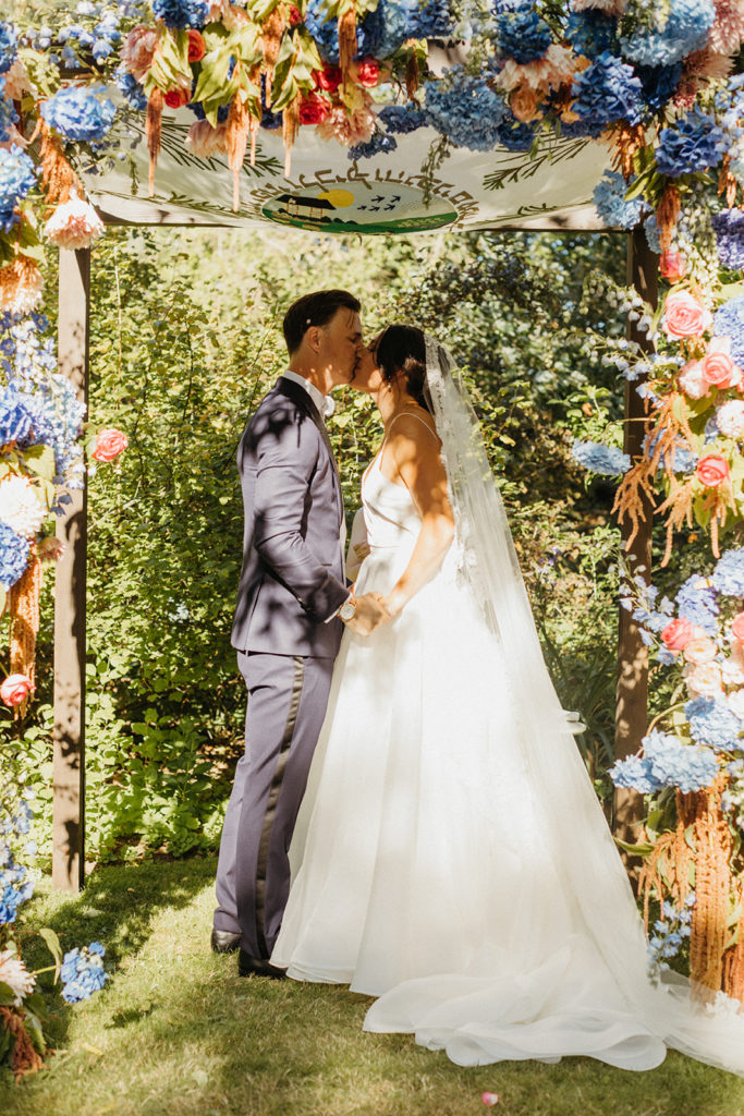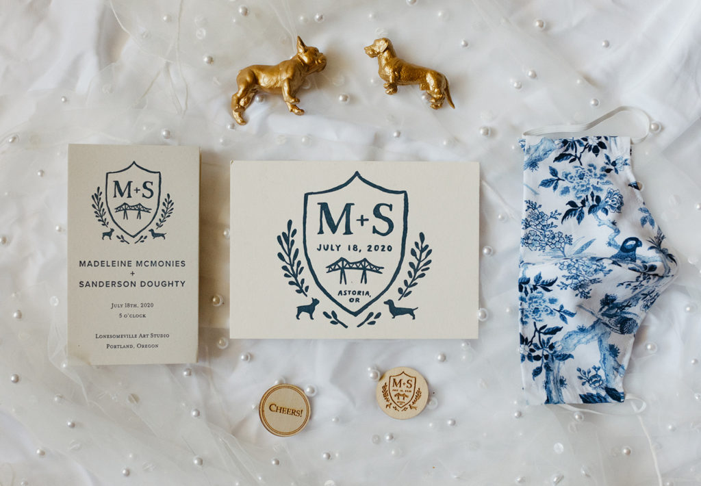 All of the details were personal and extremely meaningful. Sandy’s best man designed & handcrafted the chuppah. The cloth covering the chuppah was handmade and used by Maddie’s parents and grandparents. Maddie’s cousin Sarah officiated the wedding and helped them honor Jewish Traditions in a modern way. Their friend Jen designed the wedding crest and Morgan (another friend) designed the rings.